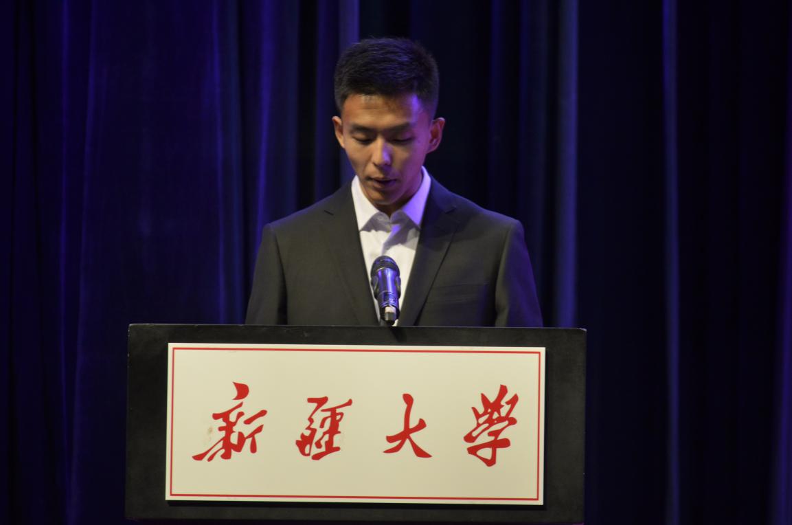首先由2018级博士研究生杨帅同学、应数17-3班王唱鑫同学代表毕业生发言。他们饱含深情地讲述了自己的大学时光,分享了即将毕业的激动心情,感谢老师们辛勤培育和无私奉献。他们表示,不论今天、明天和未来的每一天,他们将始终铭记“团结、紧张、质朴、活泼 ”的新大精神,牢记学院和恩师的淳淳教诲,努力让他们变得更加成熟、更自信、更强大。